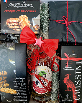 Geschenkbox Winterglück Glühgin Hochgenuss für kalte Winterabende: Ein Glas Glühgin in leckerer Begleitung Glühgin (einfach mit warmem Apfelsaft aufgießen und ein paar Deko-Gewürze - cheers!!! dazu: tolles Käsegebäck Grissini knusprige Kekse aus Frankreich Schokolade aus Frankreich mit hübscher Deko und Schleife versüßt dieses Geschenk nicht nur einen sondern viele Wintertage
