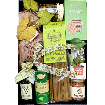 Geschenkbox Grün Es grünt so grün - mit dieser Geschenkbox ist alles im grünen Bereich : ) Wunderbare Kräuterpasta begleitet von italienischem Pesto Basilikum Öl tollem Balsamico Essig Rosmarin Crackern Riesen Kapern Wild Pastete Pastete aus der Toskana und ein großer Jute-Sack mit Kräutern der Provence - perfekt zum Kochen und Genießen