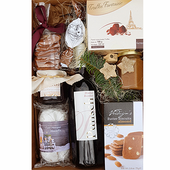 Geschenkbox Advent Welch' wunderbare Idee, jemandem mit diesen weihnachtlichen Köstlichkeiten die Adventzeit in jeder Hinsicht zu versüßen: Punsch aus Niederösterreich ohne chem. Zusätze - einfach erwärmen und genießen Weihnachtsstollen Mandelkekse französische Schokolade Lebkuchen wunderbare Gewürz Honigcreme vom oö Imker Weihnachtsmarmelade aus Salzburg.