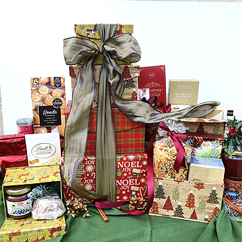 Geschenkturm Noel Wunderschöne Weihnachtsschachteln dienen gestapelt als Behälter für himmlische Weihnachts-Leckereien: 4 wunderschöne Weihnachts- Geschenk-Schachteln Weihnachtspasta Sugo Weihnachtsmarmelade Weihnachtshonig Maronencreme Oliven Würzkräuter Käsegebäck Cracker Weihnachtstee Weihnachtstee Christkindl Mandeln in Schokolade Schoko Maroni Schokoladen Trüffel Mini Christ Stollen Verpackt in Zellophan mit hübscher Schleife Wählen Sie aus 3 Varianten mit und ohne Alkohol