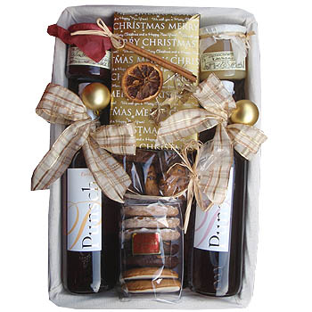 Geschenkkorb mit Punsch Ein wunderschönes, stilvolles österreichisches Geschenk für Naschkatzen: Der hübsche flache Korb mit Stoffeinlage ist gefüllt mit 2 Flaschen wunderbarem österreichischem Punsch (ohne chemische Zusätze, einfach erwärmen und genießen!), 2 tollen Weihnachtsmarmeladen (Apfel Zimt und weihnachtliche Beerenmarmelade), leckeren Cookies in 3 Geschmacksrichtungen und Kastner's Rohkost (Früchte in Schokolade getaucht) Außerdem: köstliche Lebkuchen nach einem Alt-Wiener Rezept. Ein weihnachtliches Naschvergnügen der Sonderklasse.