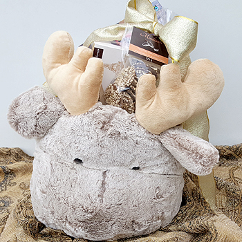 Fußwärmer Rentier Schenken Sie kuschelige Wärme und himmlischen Genuss zur Weihnachtszeit: Fußwärmer als Rentier für kuschelig warme Füße gefüllt mit Sekt und viel Schokolade (Schokolade von Lindt, Maronencreme, franz. Schokoladentaler, franz. Schokoladetrüffel)
