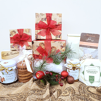 Schachtelturm Engel 3 wunderschöne Geschenk-Schachteln gefüllt mit köstlichen Weihnachtsleckereien. 3 Schachteln mit Engeln mit roten Schleifen gefüllt mit Weihnachtstee Weihnachtsmarmelade Weihnachtshonig französische Schokolade Wild Pastete und köstlichem Lebkuchen geliefert in Zellophan verpackt mit hübscher Schleife